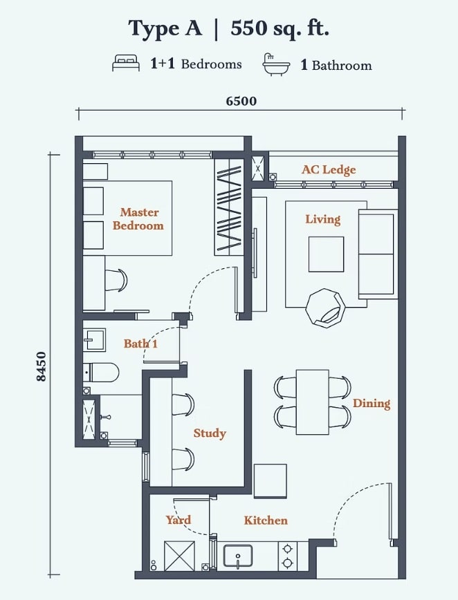 | Type A | 550 sq. ft. |
