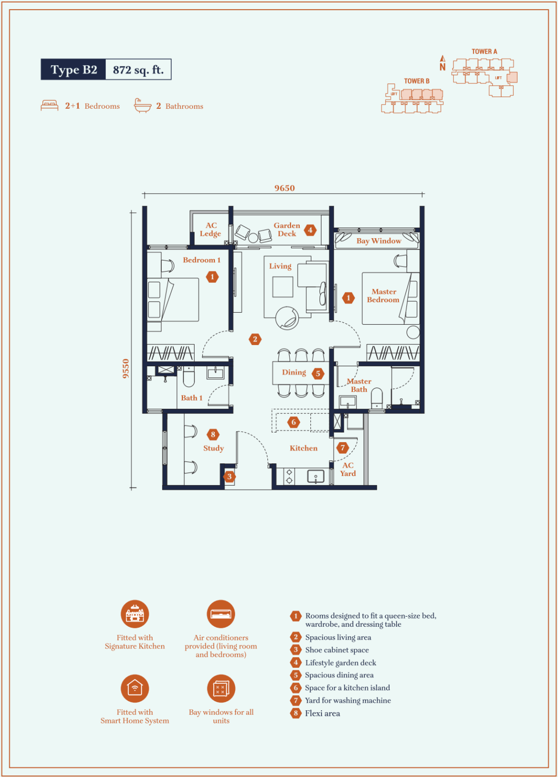 | Type B2 | 872 sq. ft. |