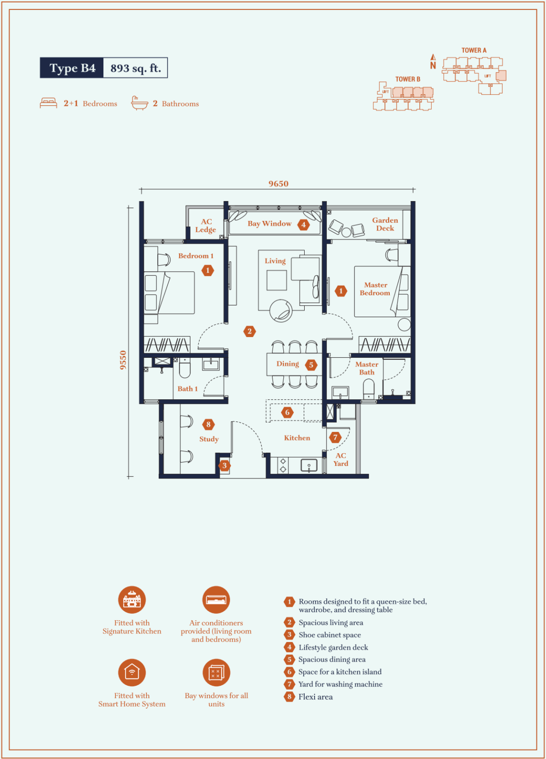 | Type B4 | 893 sq. ft. |