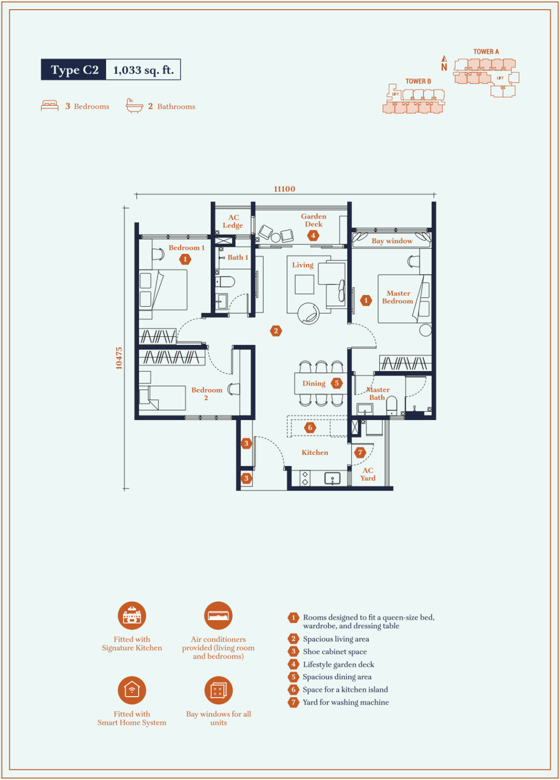 | Type C2 | 1033 sq. ft. |