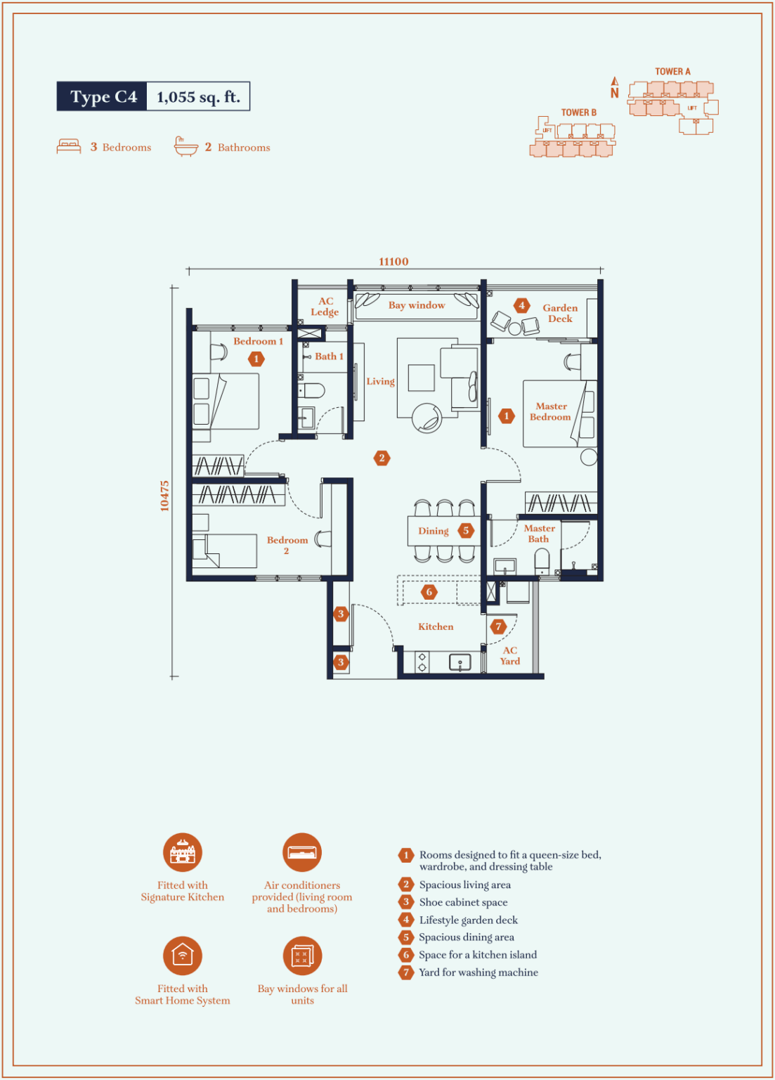 | Type C4 | 1055 sq. ft. |