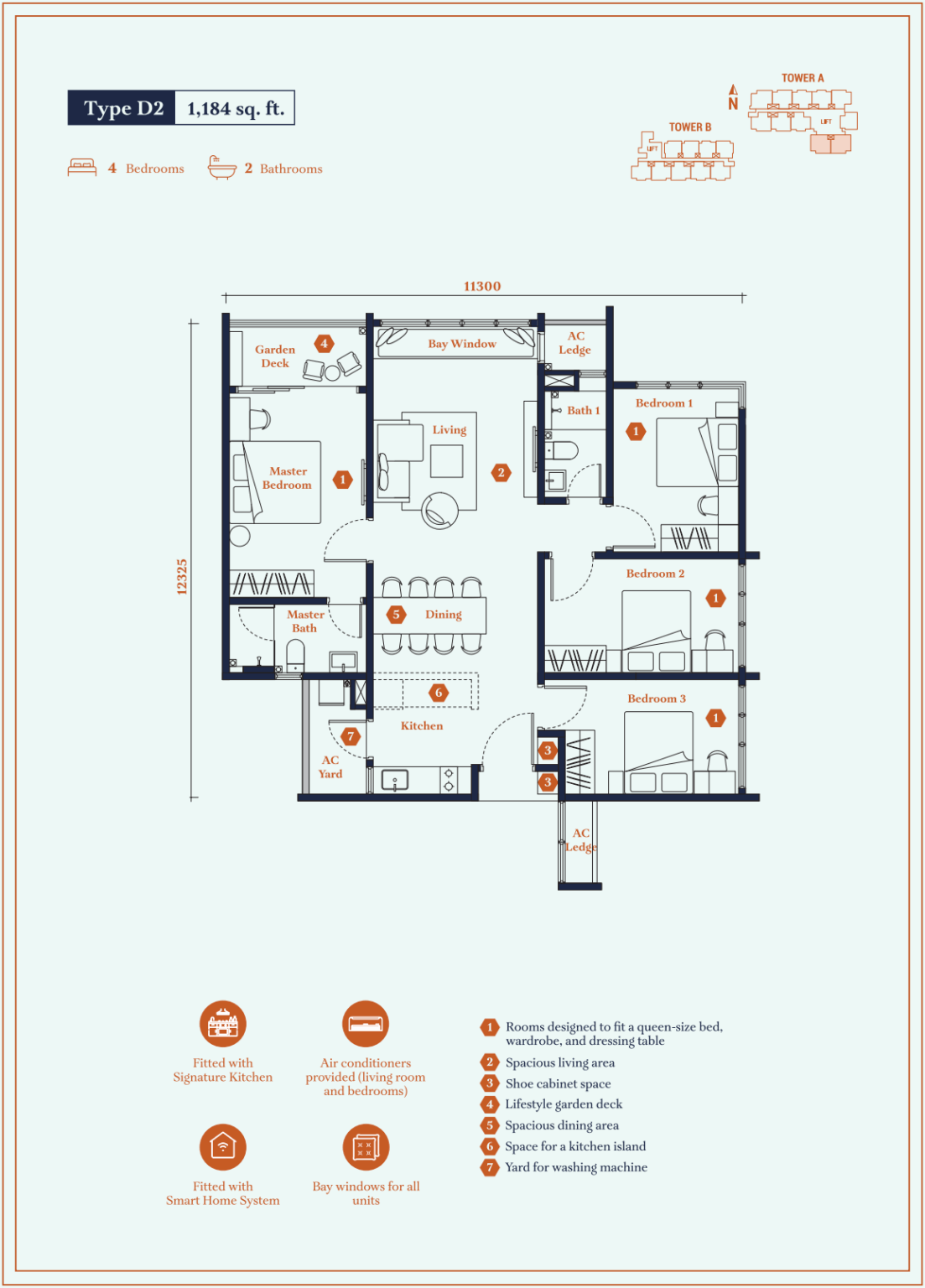 | Type D2 | 1184 sq. ft. |