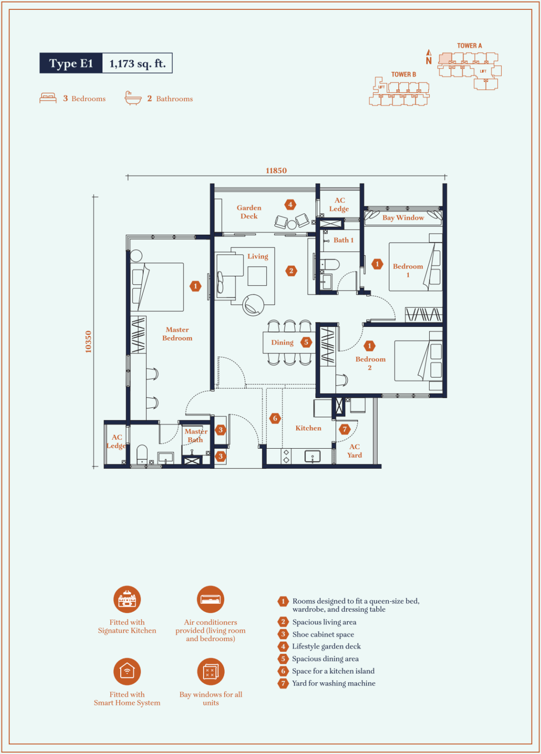 | Type E1 | 1173 sq. ft. |