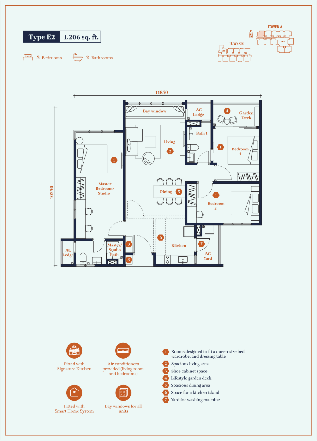 | Type E2 | 1206 sq. ft. |