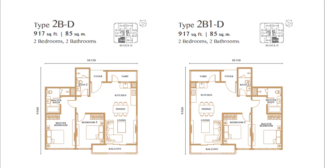 | Type 2B-D | 917 sq. ft. |