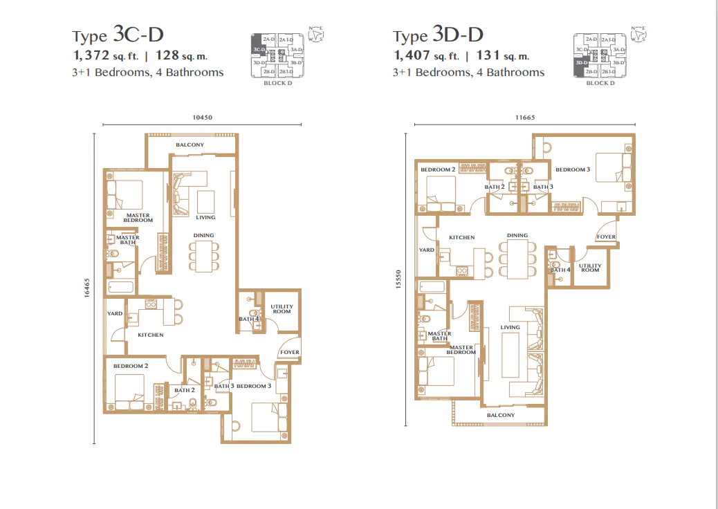 | Type 3D-D | 1407 sq. ft. |