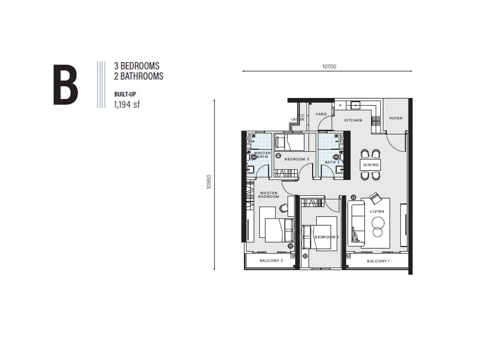 | Type B | 1194 sq. ft. |