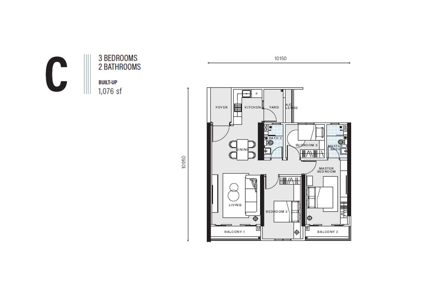| Type C | 1076 sq. ft. |