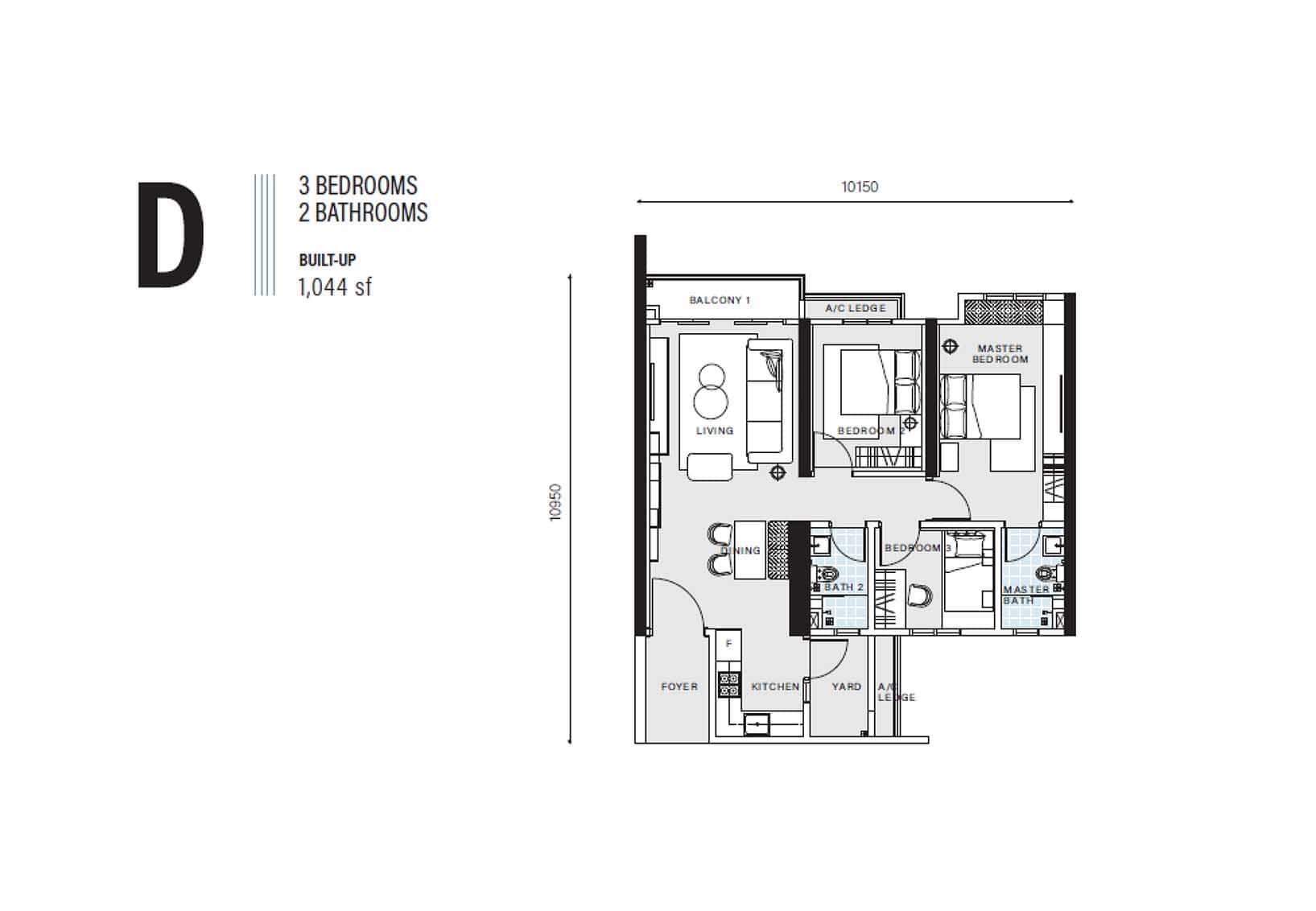 | Type D | 1042 sq. ft. |
