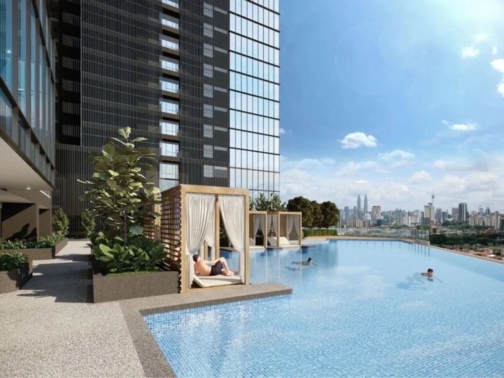 Offers good amenities: pool, infinity pool, balconies with city skyline views, security (CCTV, card access, etc.), glass features, sky gardens, etc. The development also has retail space and is part of broader masterplan elements like KL River City.