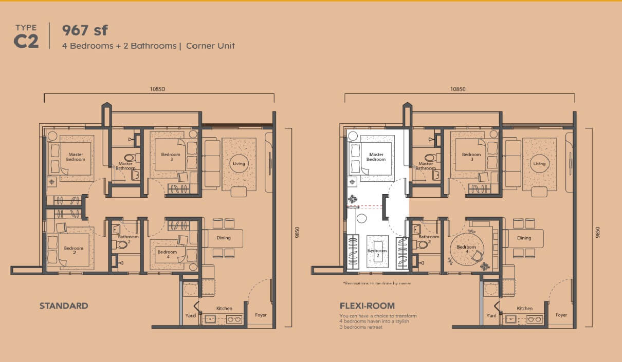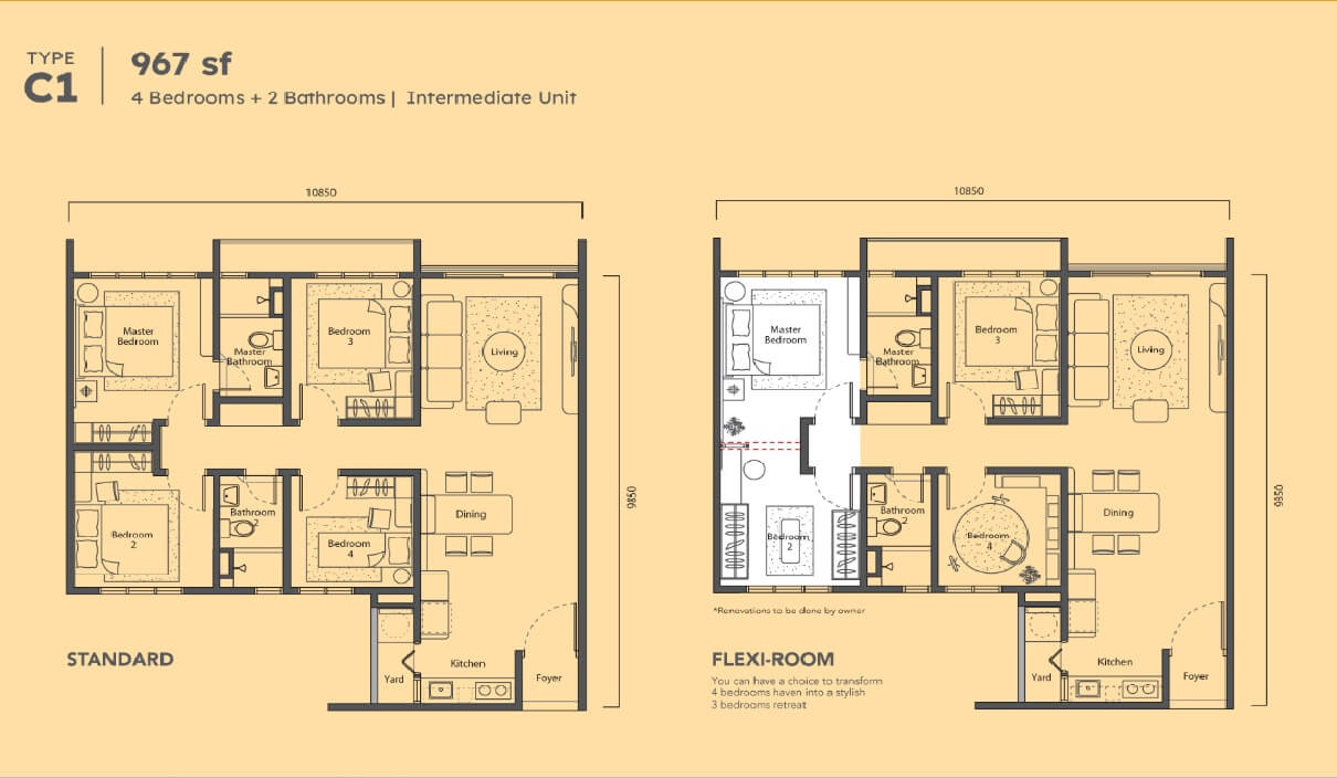 The project consists of a 33-storey residential tower featuring 494 residential units. Unit sizes range from approximately 551 sq ft to 967 sq ft, with flexible layouts that cater to different lifestyle needs, including 2-, 3- and 4-bedroom configurations. Each unit comes with two dedicated car park bays