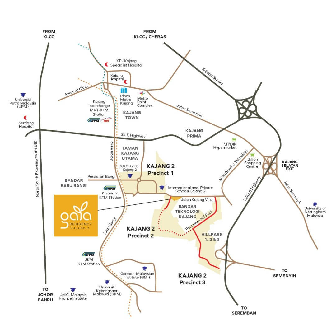 Well-Connected Urban Living: Kajang 2 is designed as a modern community with access to major highways such as SILK, LEKAS, BESRAYA, SKVE, PLUS, and Grand Saga, as well as KTM rail connectivity via the Kajang 2 KTM Station, which supports city commuting and accessibility.