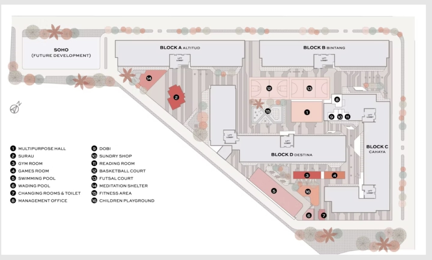 Co-working venues, BBQ sections, outdoor gym, and a kindergarten (tadika)