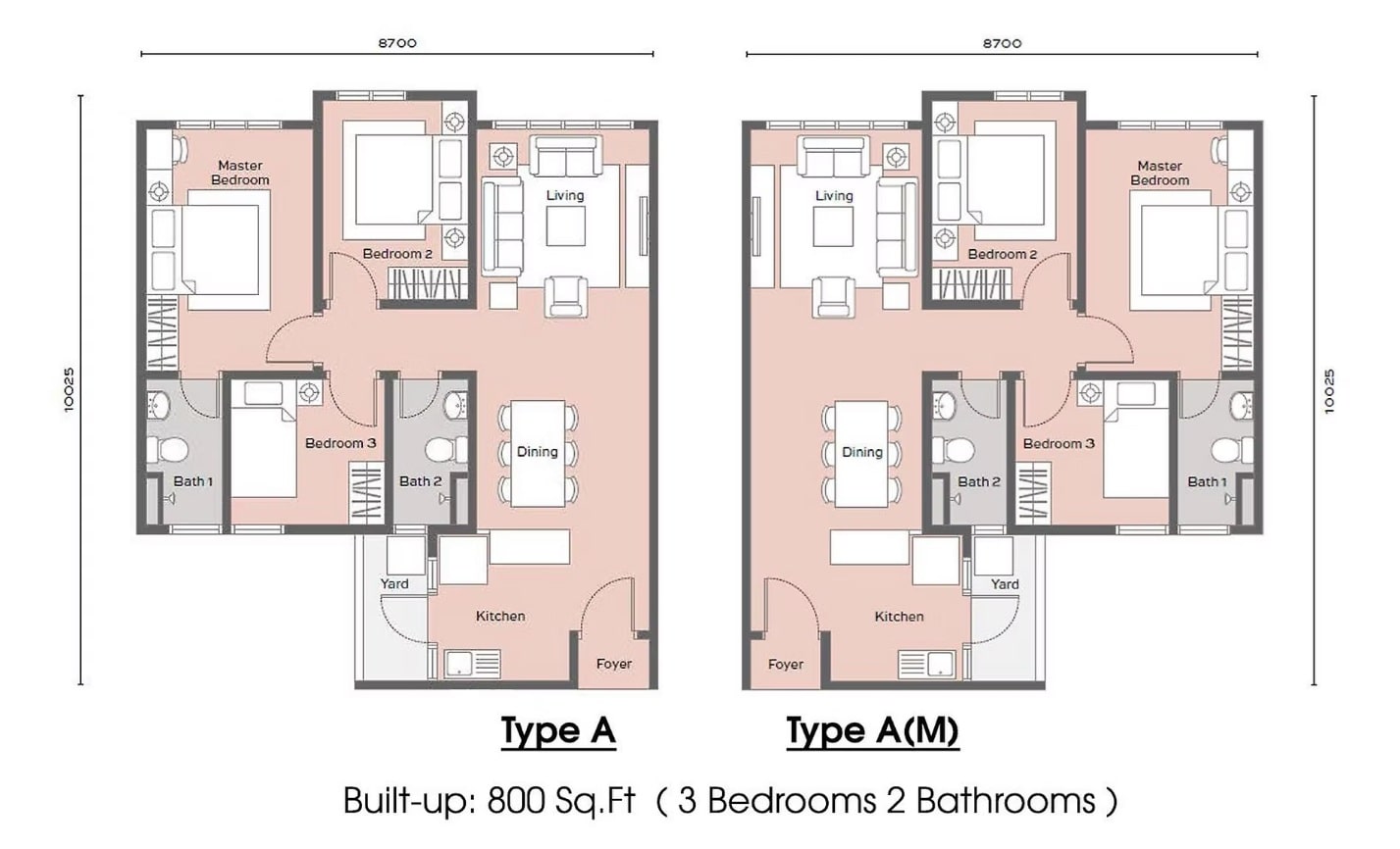 Each unit spans 800 sq ft, featuring 3 bedrooms, 2 bathrooms, a balcony (yard), and one covered car park. Priced affordably at around RM300,000, the project targets middle-income Kuala Lumpur residents.