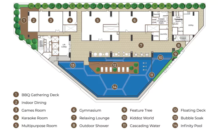 The development has a variety of convenient facilities, such as a swimming pool, gym, and playground. These facilities are located on the podium level and the rooftop, providing residents with a variety of options to choose from.