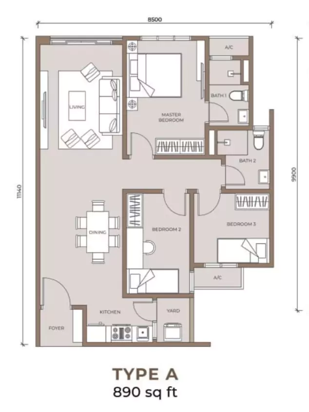 Type A890 sq. ft.