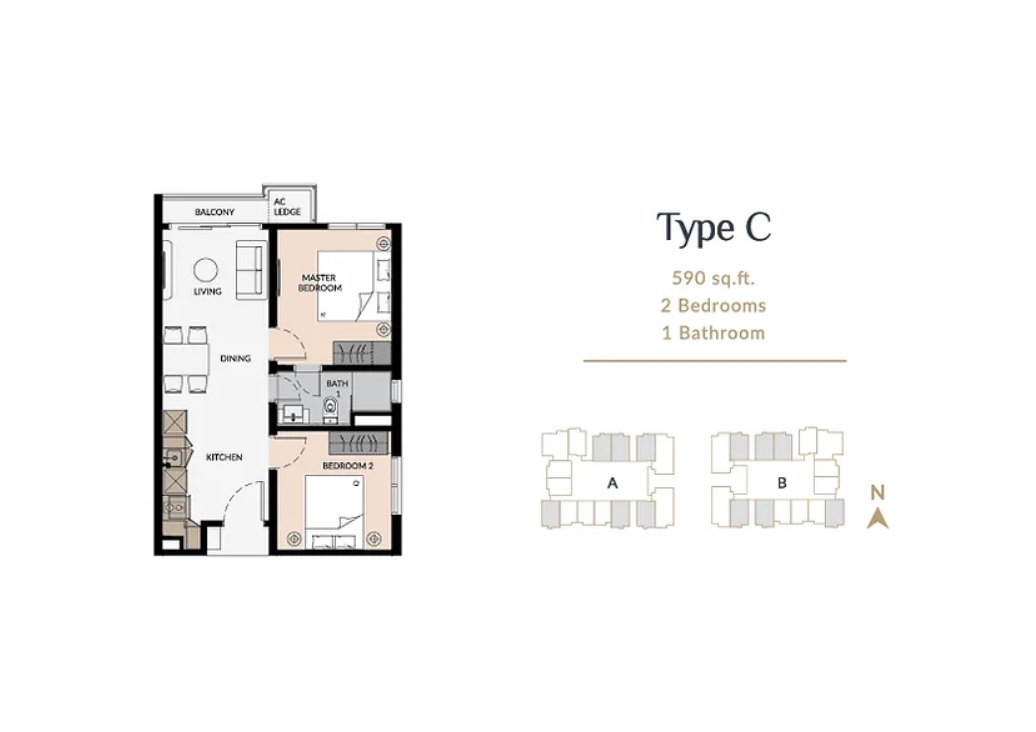 | Type C | 590 sq. ft. |
