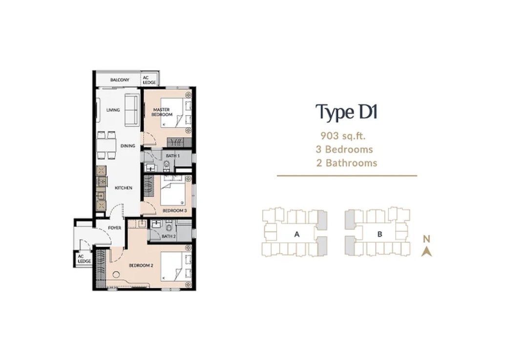 | Type D1 | 903 sq. ft. |