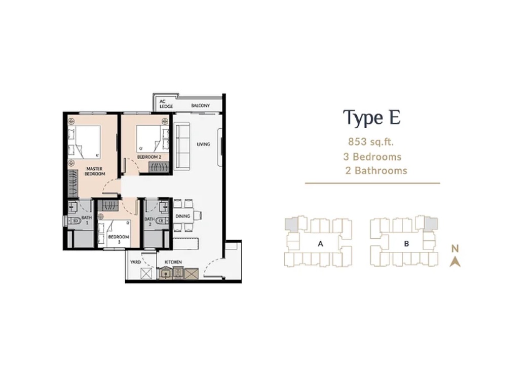 | Type E | 853 sq. ft. |