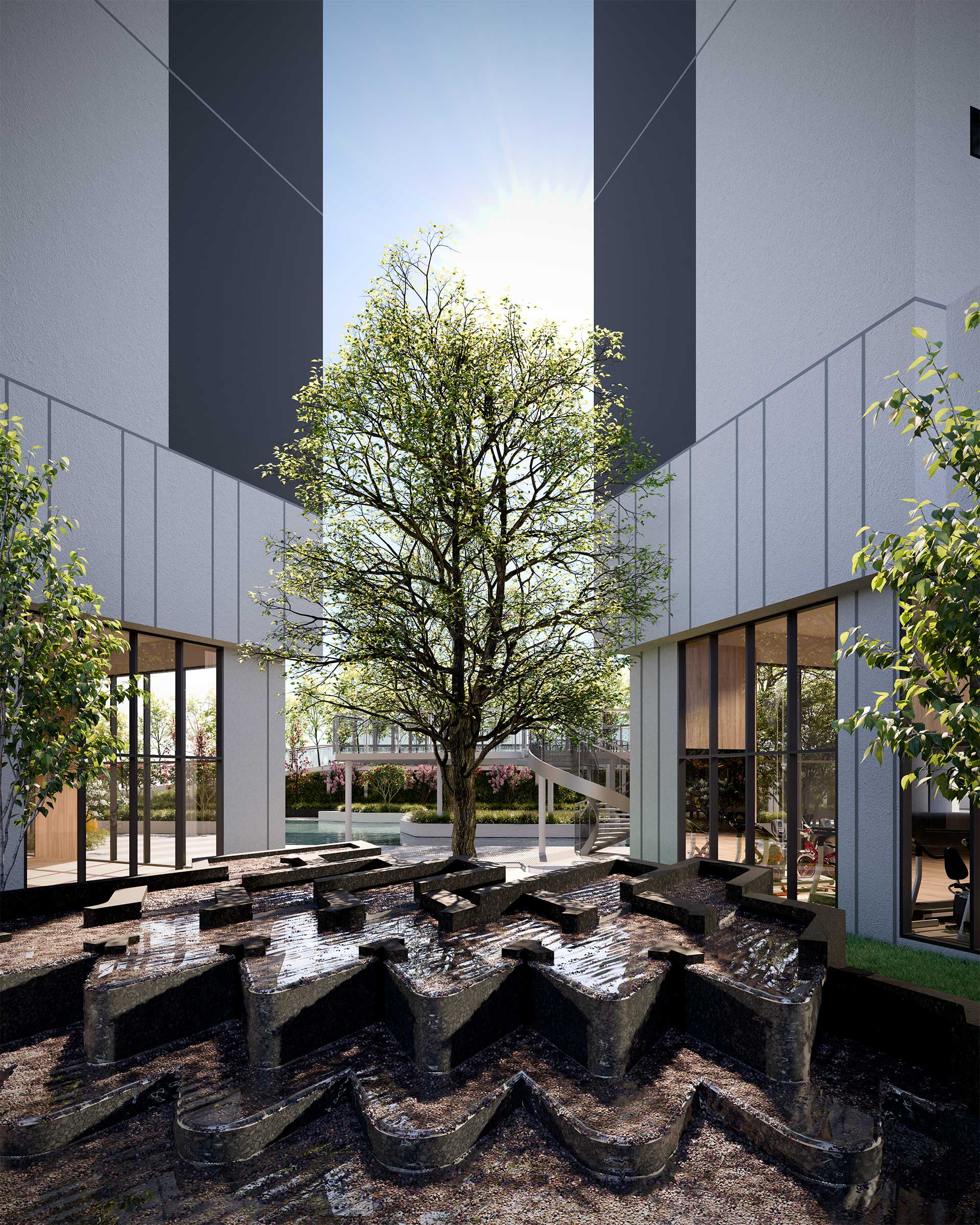 Balanced Urban & Natural Environment: Water features, atriums, and eco-sanctuary zones throughout the landscaped precinct enhance liveability and provide calm, nature-inspired environments within the urban setting.