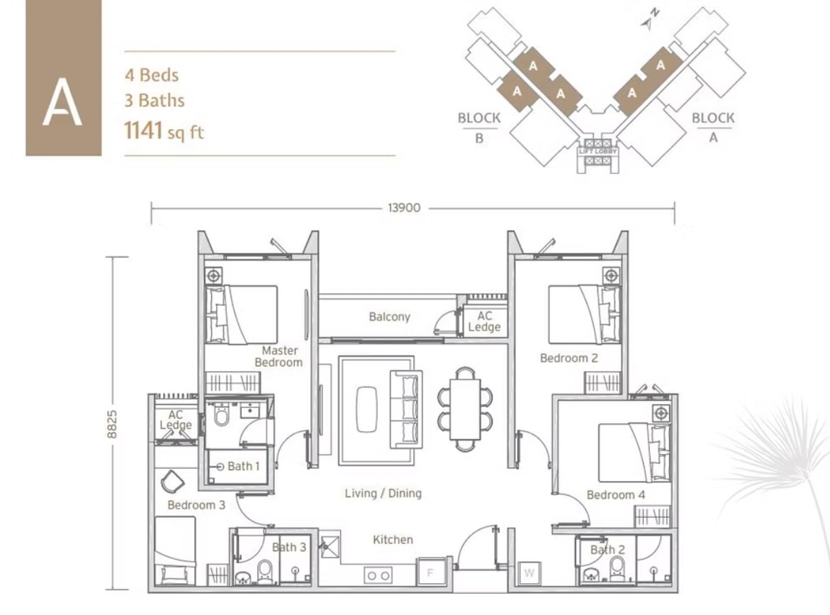 | Type A | 1141 sq. ft. |