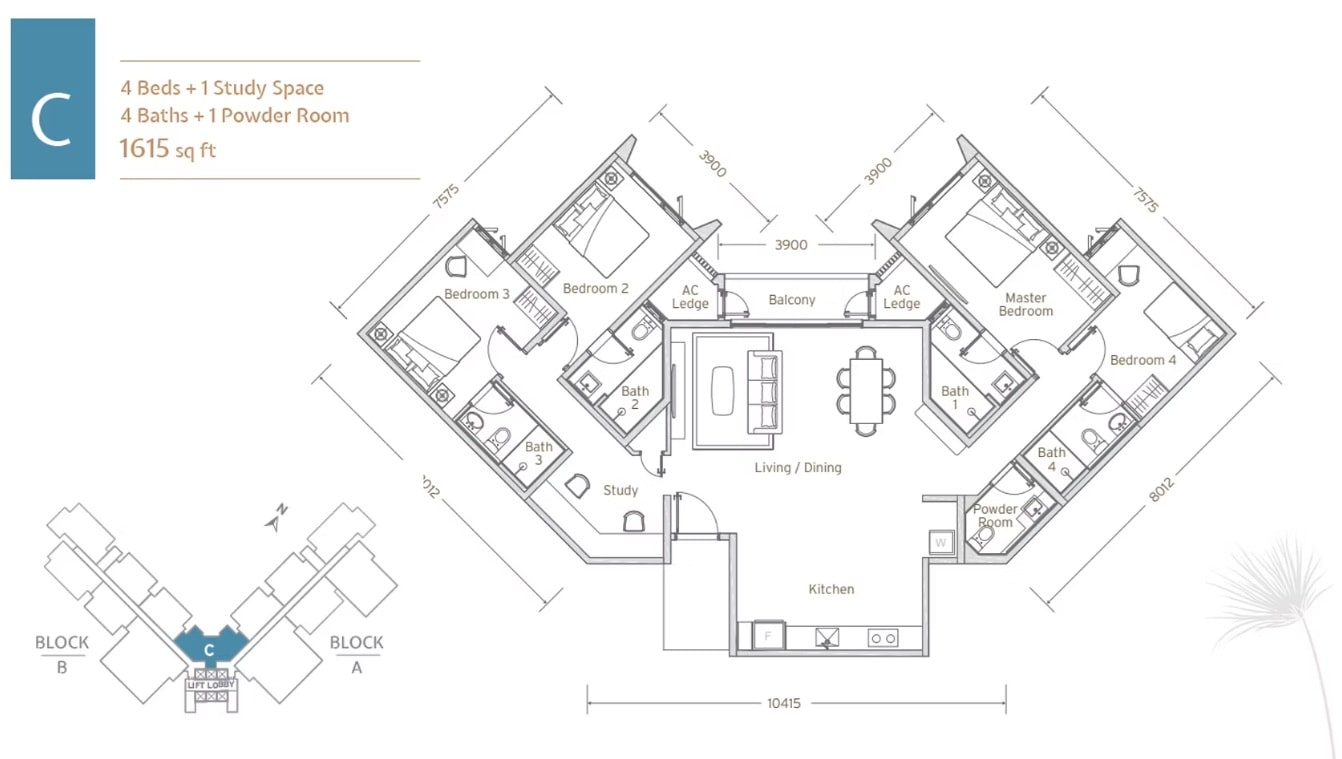 | Type C | 1615 sq. ft. |