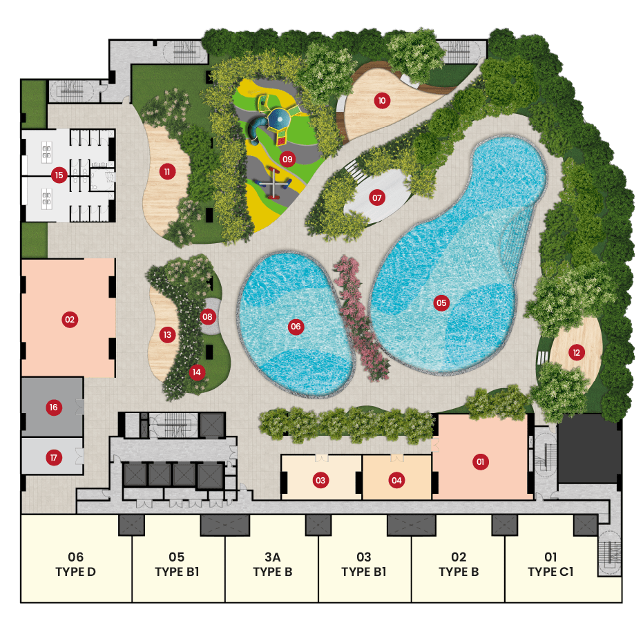A key highlight is its Healthy Building / Eco-Friendly Design Principles. The residences adopt the Healthy Home concept, prioritizing natural light, cross ventilation, and energy-efficient features to create a comfortable and sustainable living environment. The design encourages good airflow, reducing reliance on artificial cooling, while ensuring energy efficiency for lower utility bills. Together, these elements promote both physical comfort and environmental responsibility, aligning with the needs of modern city dwellers who value healthier living spaces.