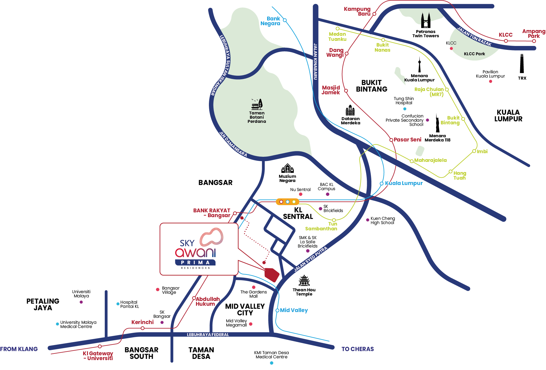 What truly sets this project apart is its strategic location. Nestled in the bustling neighbourhood of Brickfields, SkyAwani PRIMA offers seamless connectivity to major hotspots: