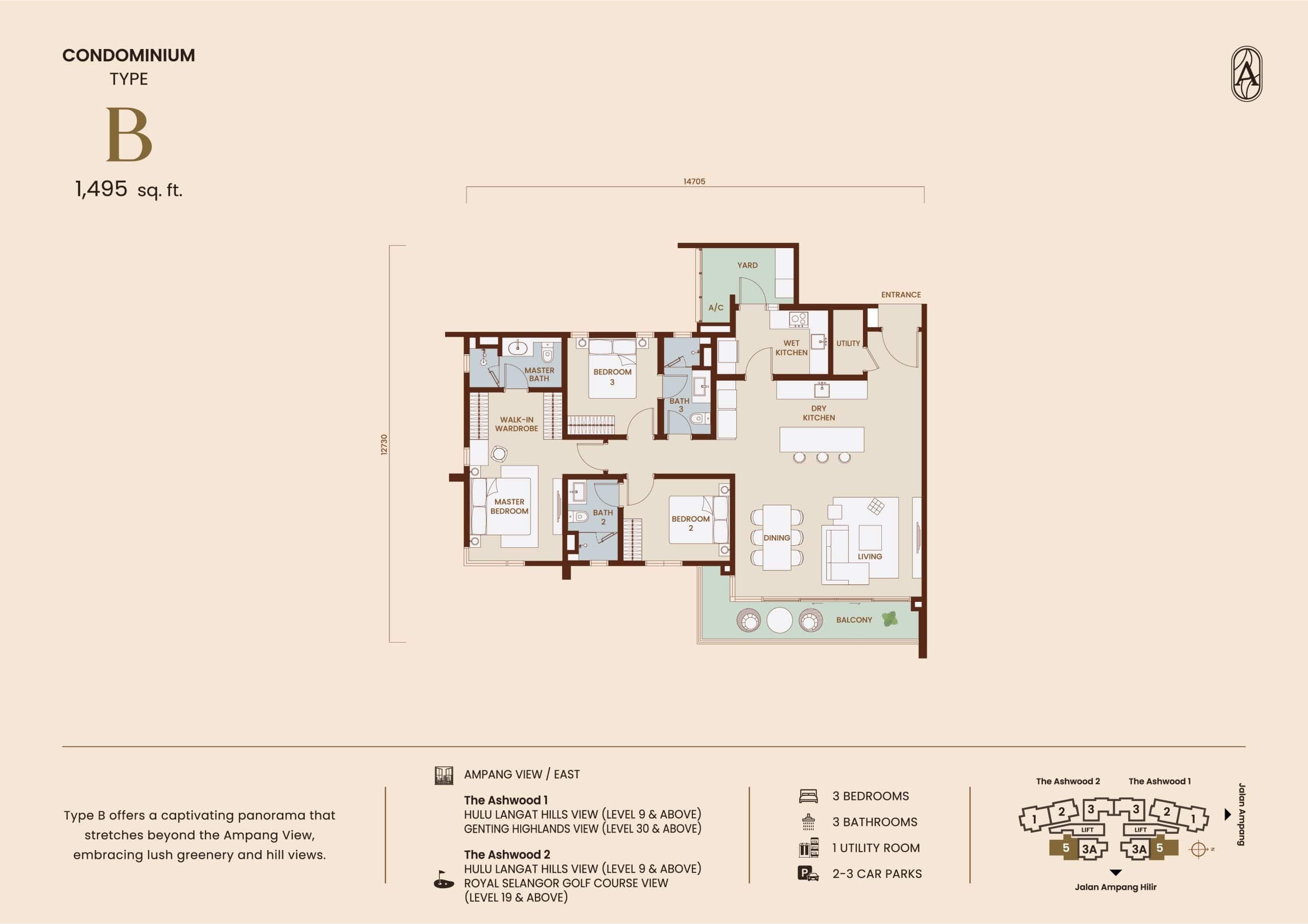 The Ashwood is a high-end, freehold residential development by Paramount Property (Cityview) Sdn Bhd situated in the elite U-Thant enclave of Kuala Lumpur, also known as the city’s “Embassy Row”. The project occupies 3.59 acres (≈1.46 ha) of prime land.