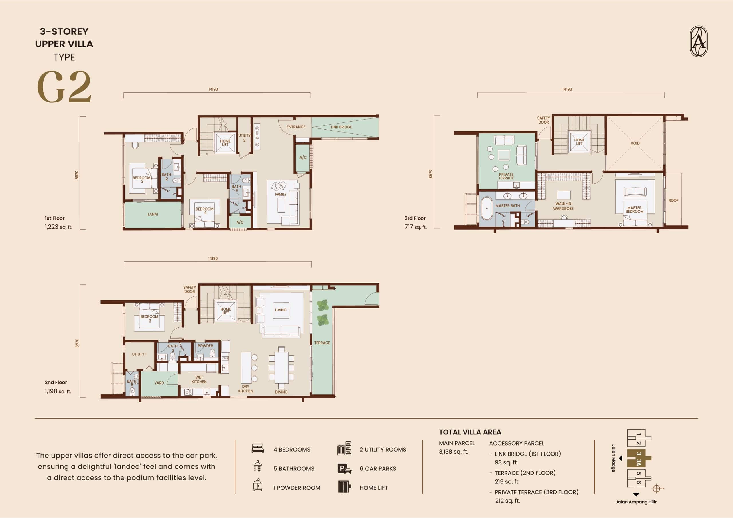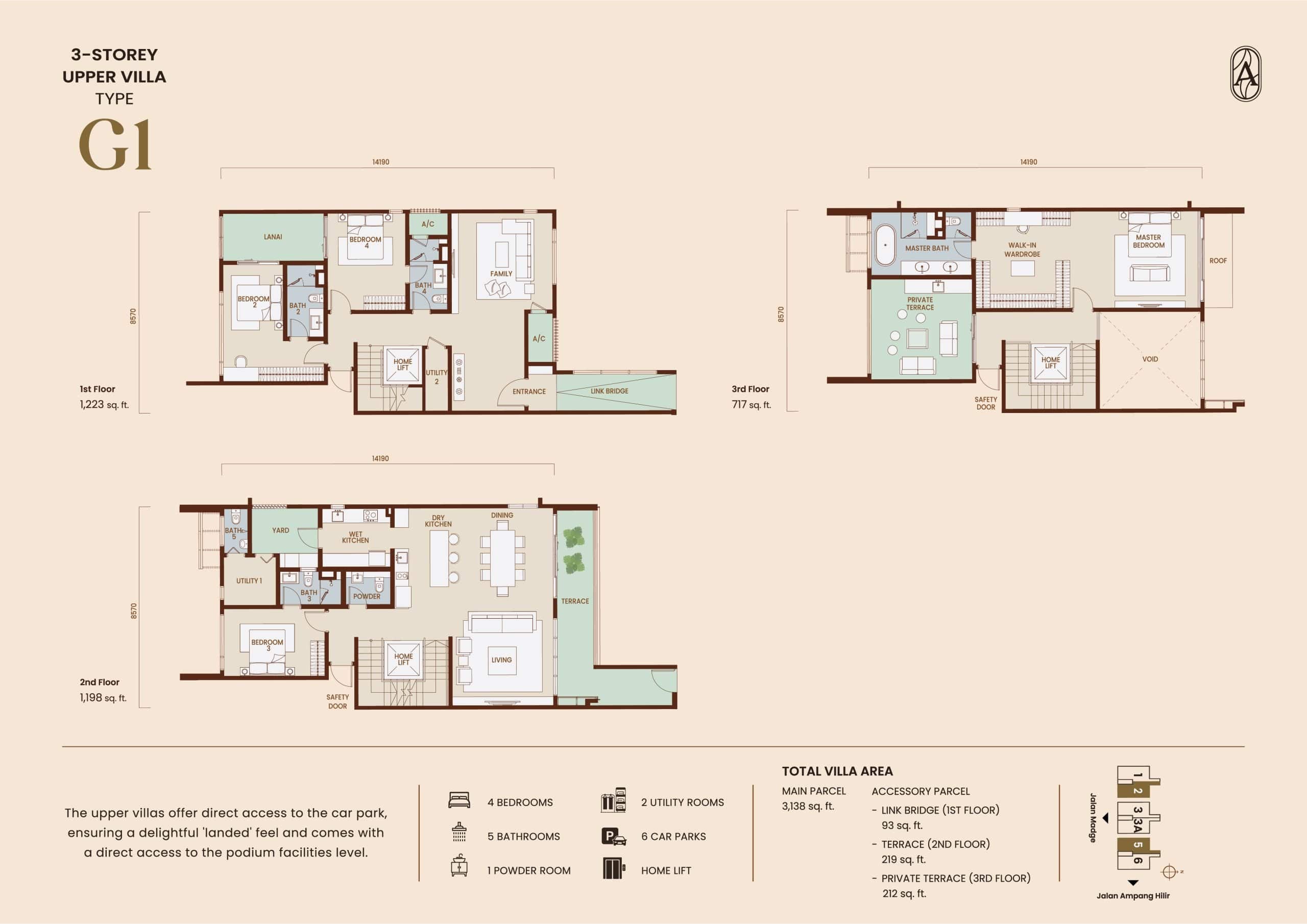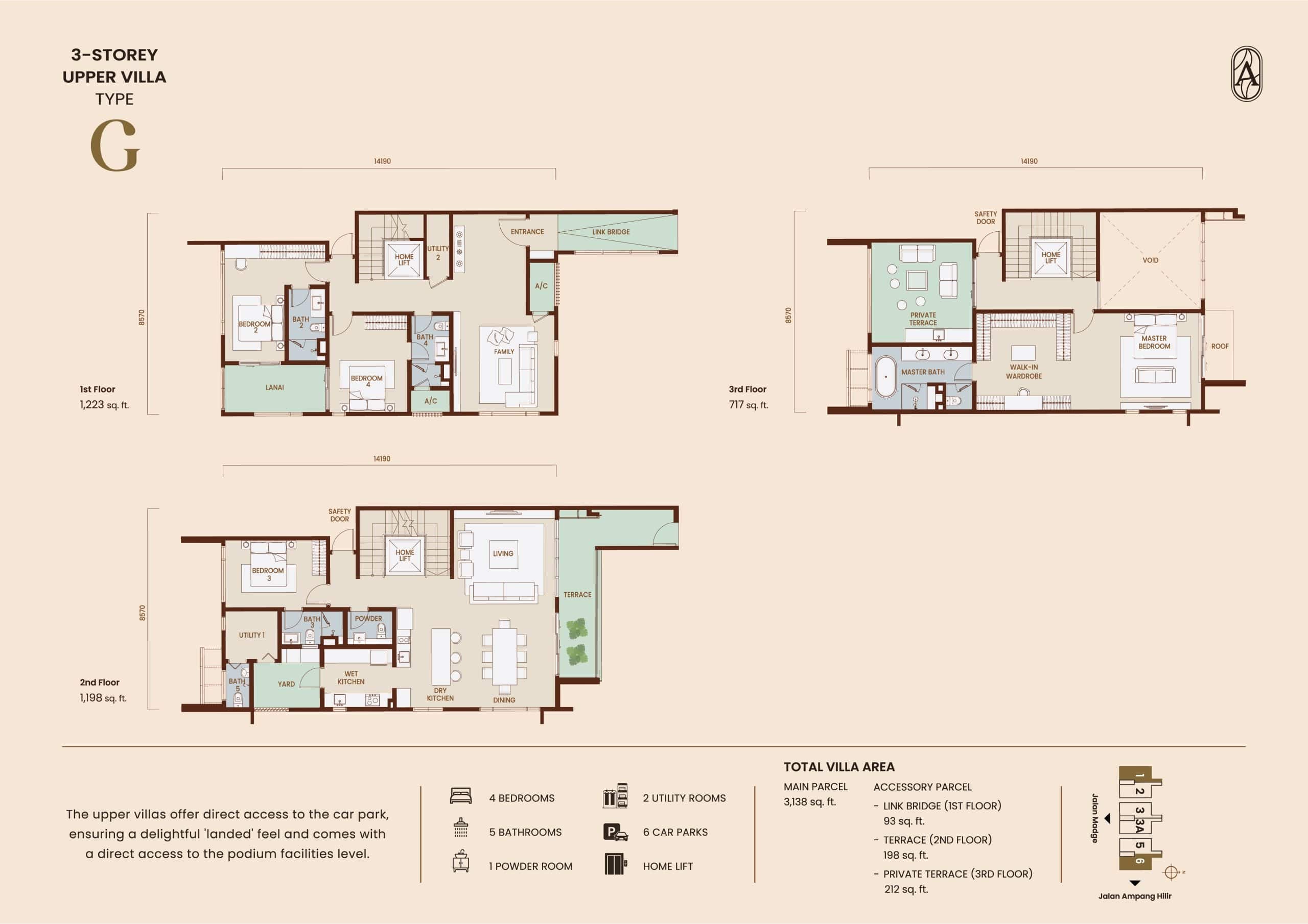 | 3-Storey Upper Villa Type G1 | 3138 sq. ft. |