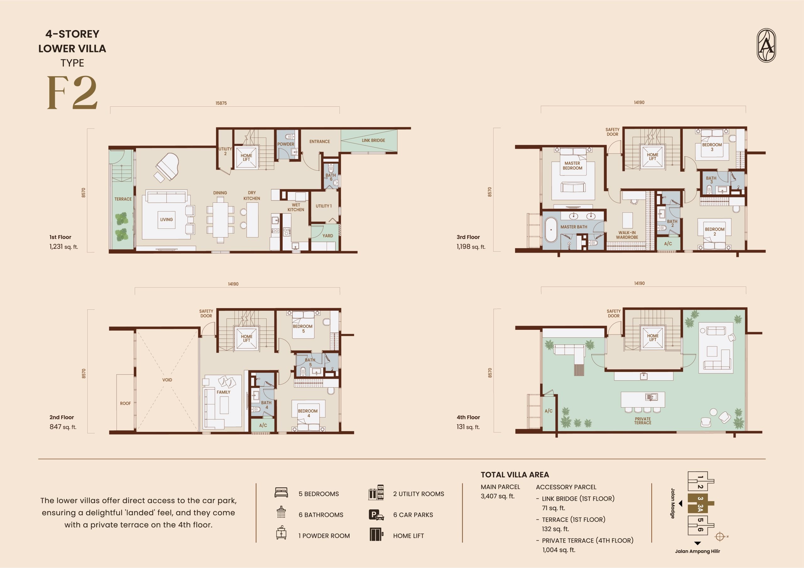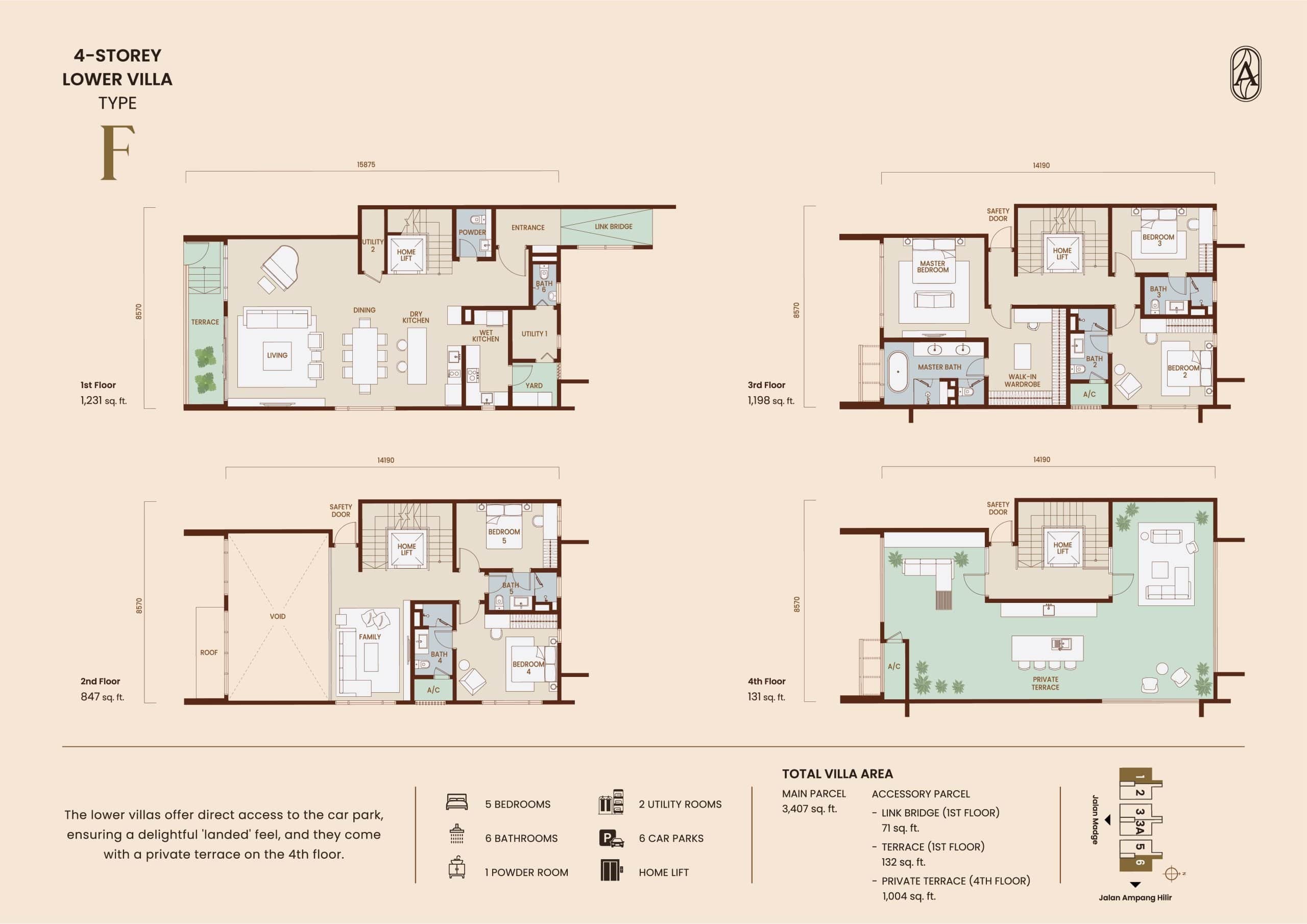 | 4-Storey Lower Villa Type F | 3407 sq. ft. |