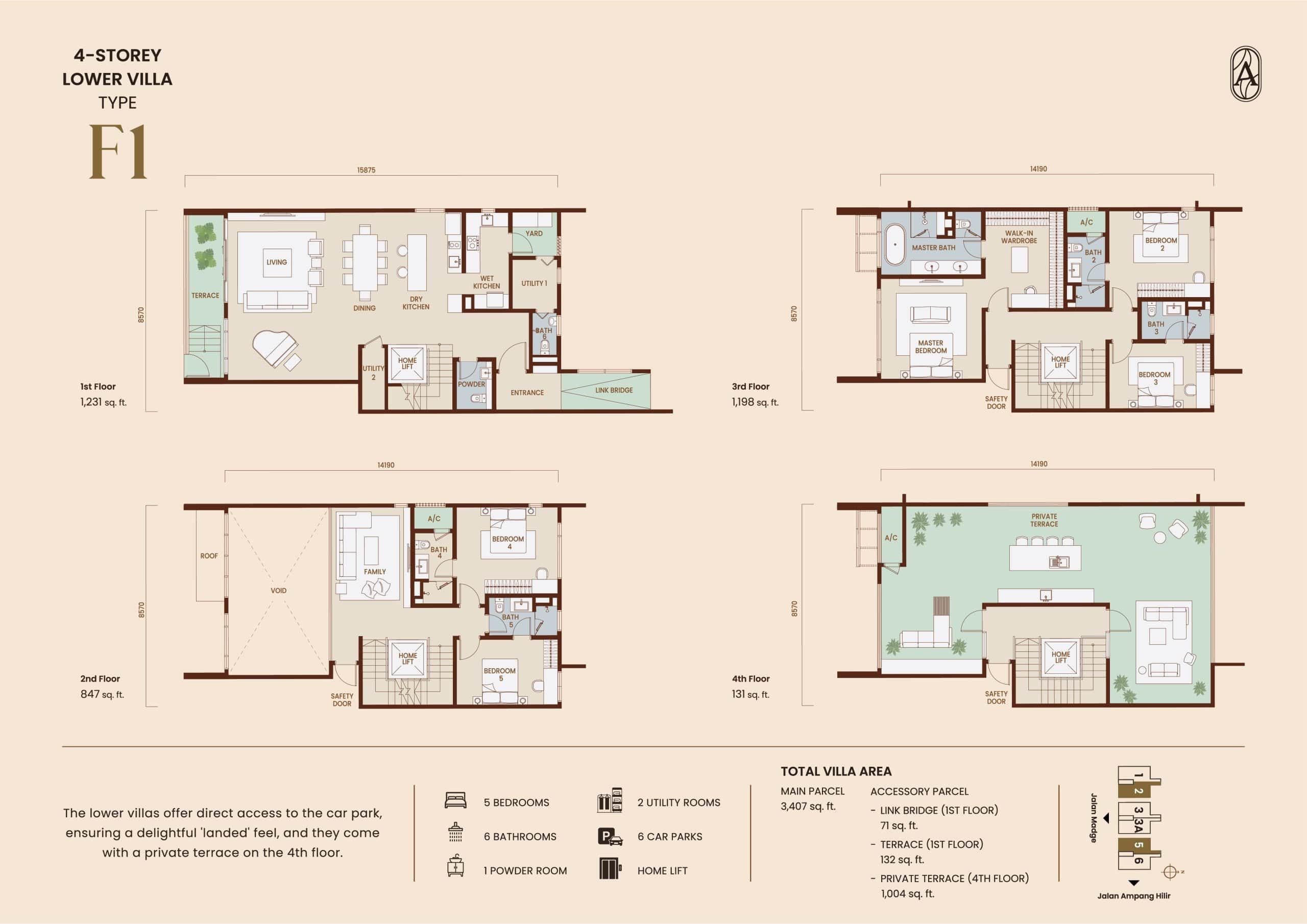 | 4-Storey Lower Villa Type F1 | 3407 sq. ft. |