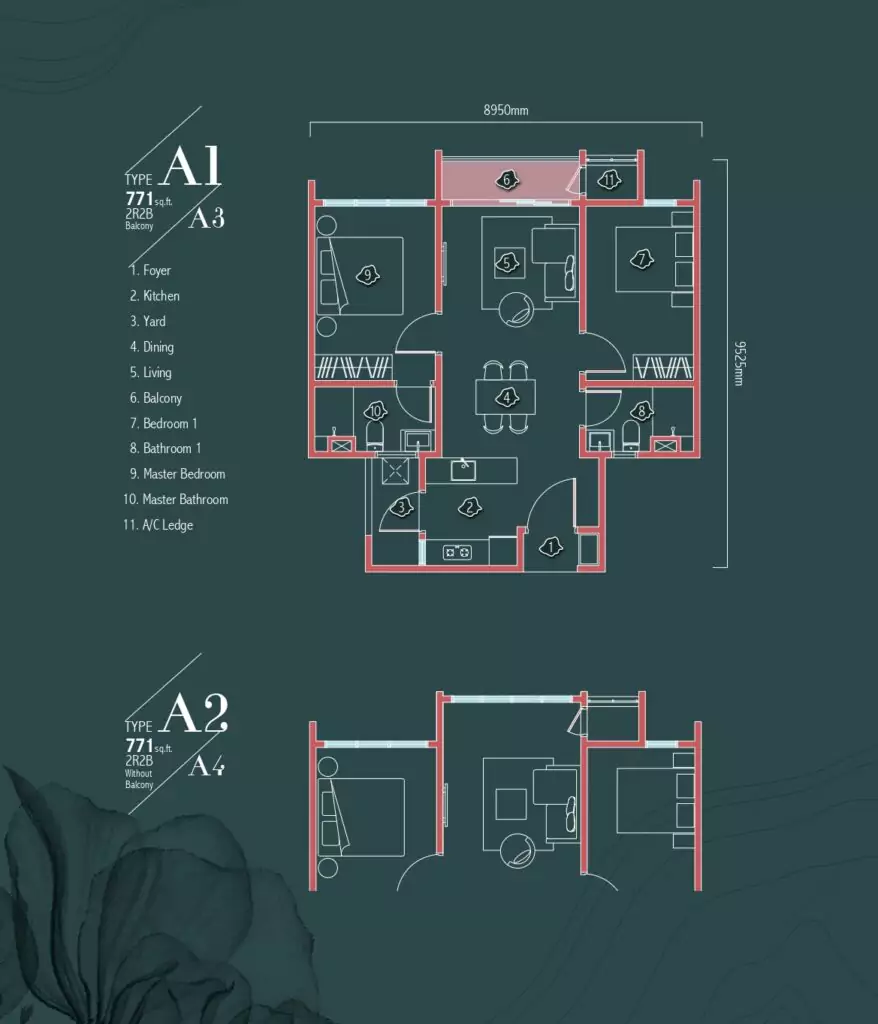 | Type A2 / A4 | 771 sq. ft. |