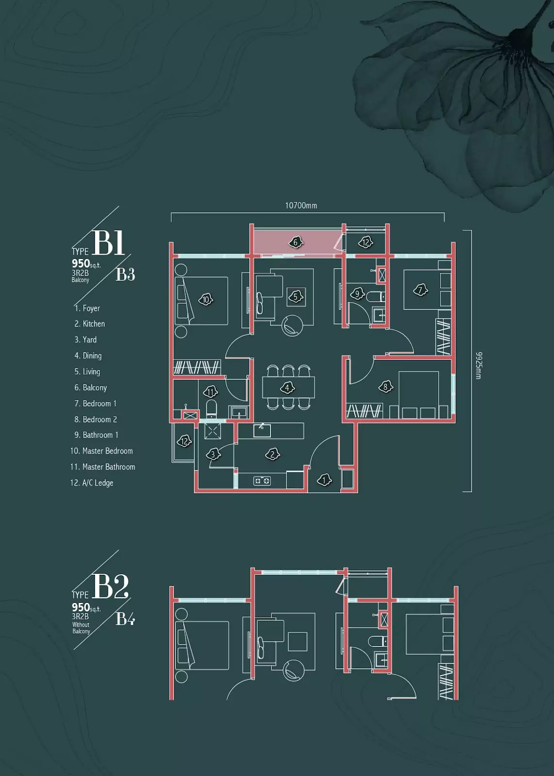 | Type B5 | 950 sq. ft. |