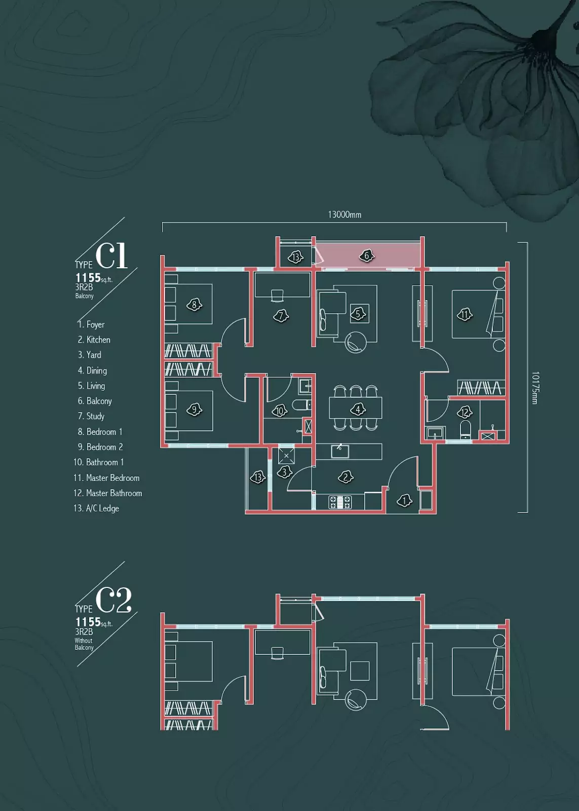 | Type C1 | 1155 sq. ft. |