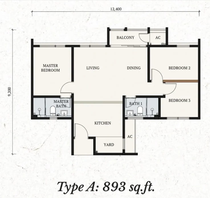 | Type A | 893 sq. ft. |