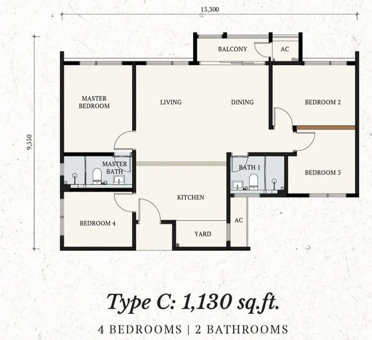 | Type C | 1130 sq. ft. |