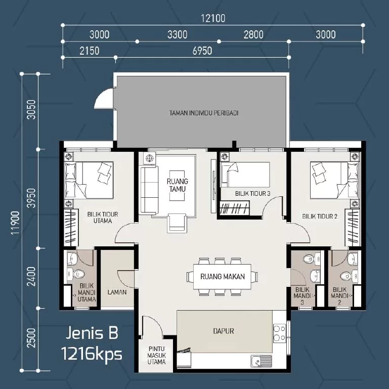 | Type B | 1216 sq. ft. |