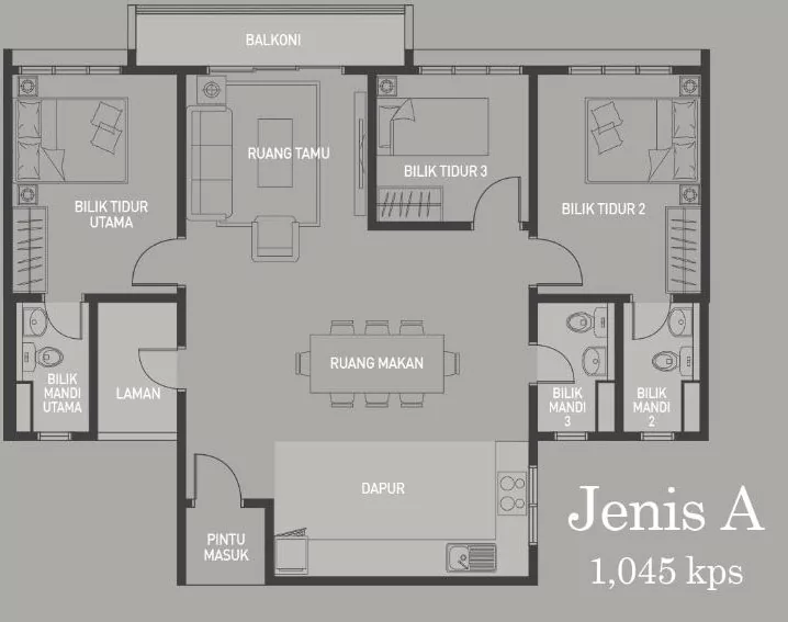 | Type A | 1045 sq. ft. |
