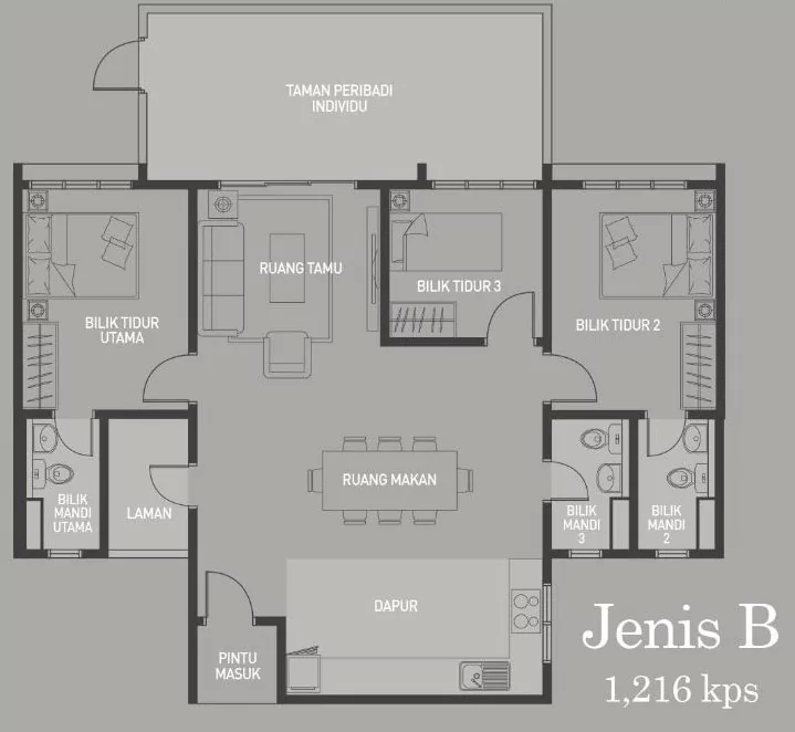 | Type B | 1216 sq. ft. |