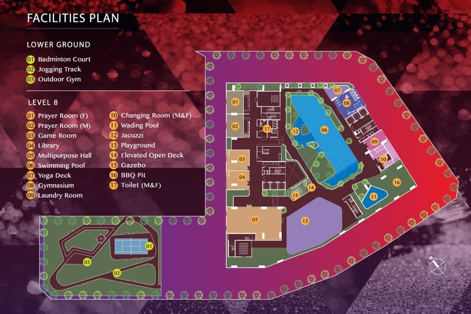 The development’s design seamlessly integrates modern living with a focus on wellness and recreation. A dedicated facilities floor serves as a hub for residents to engage in various activities, from invigorating workouts in the gymnasium to leisurely moments of relaxation by the swimming pool.