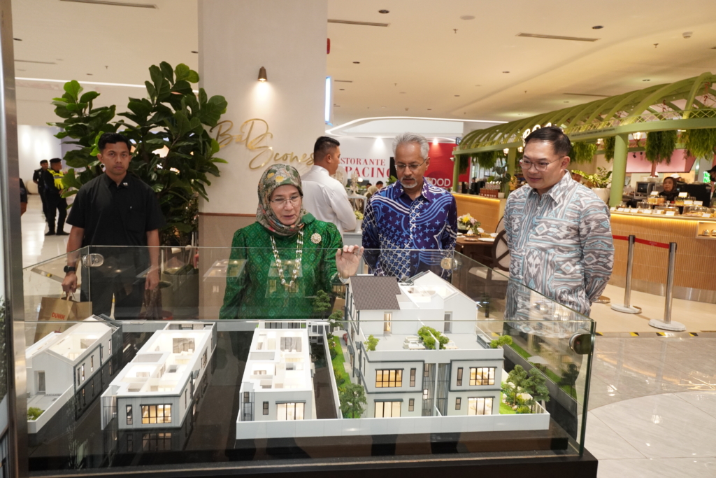 Her Royal Highness Tengku Ampuan of Pahang Tunku Azizah Aminah Maimunah Iskandariah admiring a scale model of Andara, Sime Darby Property’s landed residential product in Ara Damansara.